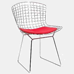 Questa sedia-scultura disegnata da Harry Bertoia, realizzata in modo artigianale con un tondino di acciaio cromato e saldato, ha un' estetica cosi leggera da sembrare che 'lo spazio la attraversi'.